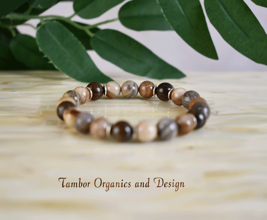 AURIC PROTECTION Bracelet, AAA Natural Petrified Wood Jasper, Black Moonstone, Bronzite, Leo, Virgo, Scorpio, Libra, Cancer