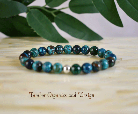 Stone of Wisdom Bracelet, AAA Natural Chrysocolla, 925 Sterling Silver, Empowerment, Strength, Sagittarius, Throat and Heart Chakra