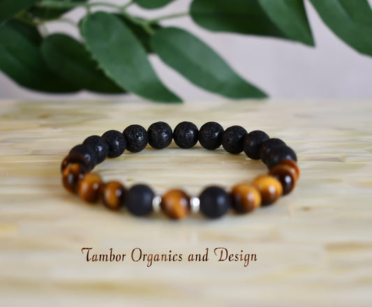 Grounding and Success Bracelet, AAA Natural Yellow Tiger Eye, AAA Natural Lava Stone, Courage, Leo, Gemini, Solar Plexus, Root Chakra